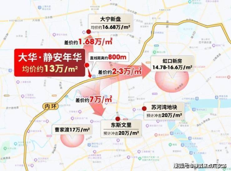 上游东斯文里预计比项目贵7万/㎡,同级虹口新房比项目贵2-3万/㎡,下游新房也比项目高1.68万/㎡,大华·静安年华安全垫拉满!