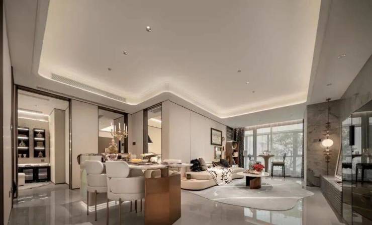 精装标准:采用岩板通铺、高仪/唯宝等一线品牌卫浴,精装标准不低于3000元/㎡