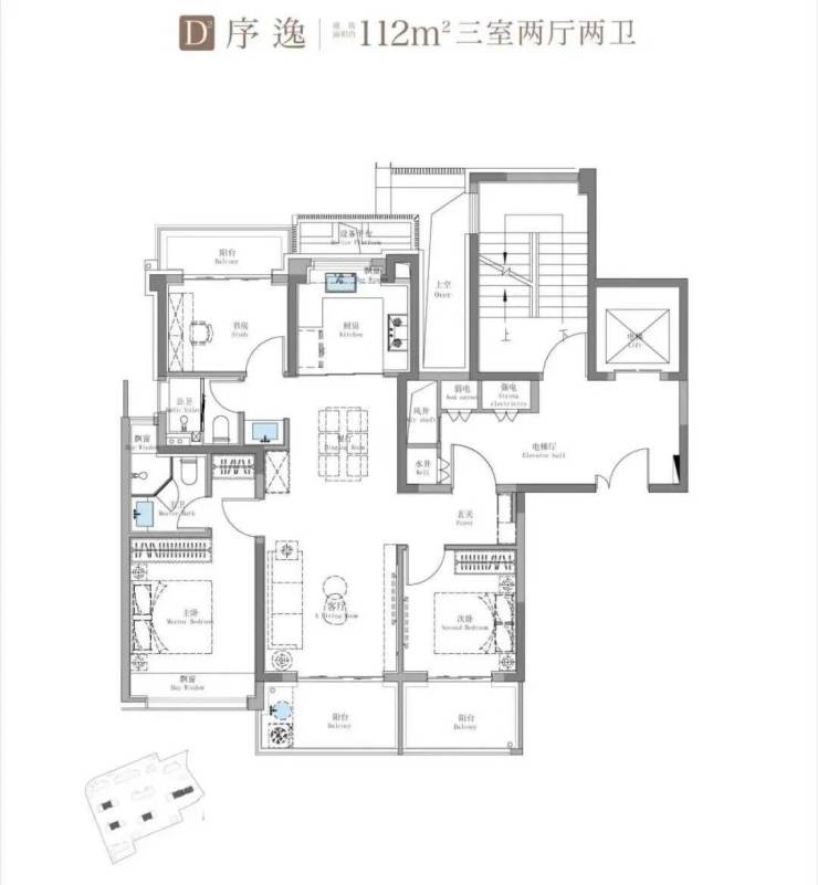 114-115㎡三房:实得率高达93%,使用面积堪比常规130㎡户型,空间利用率极高