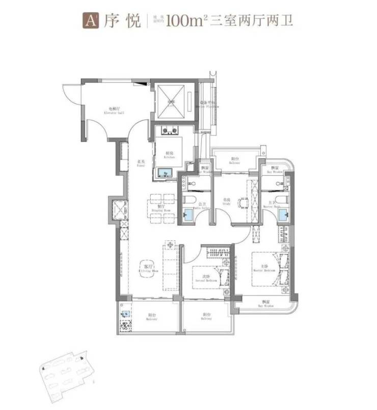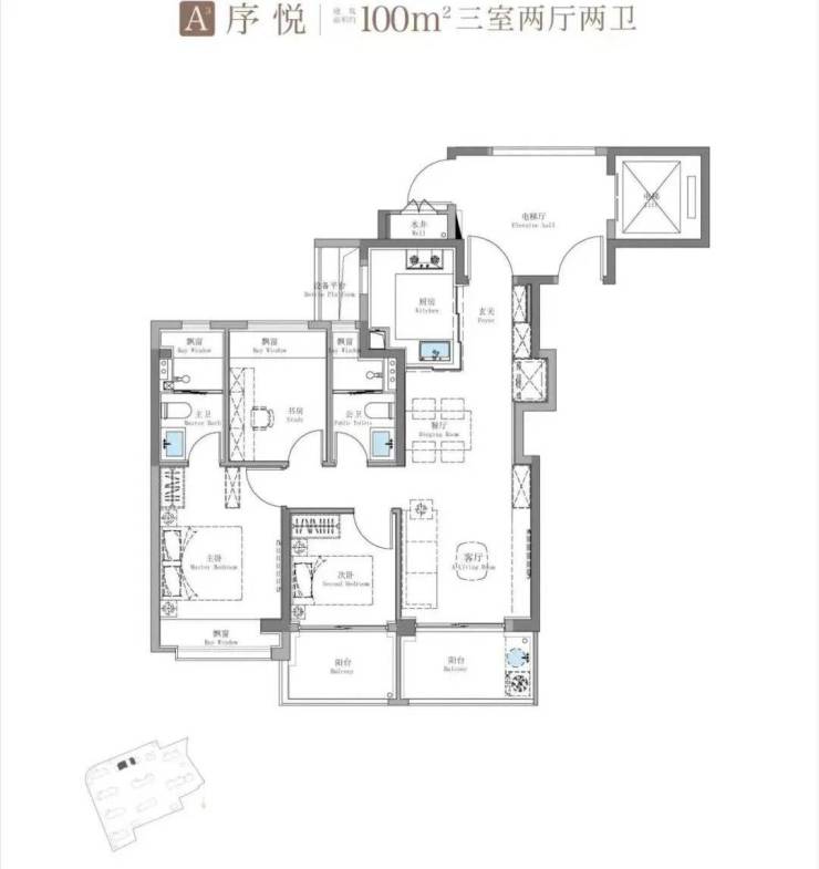 101㎡三房:三开间朝南,全明通透,适合刚需上车