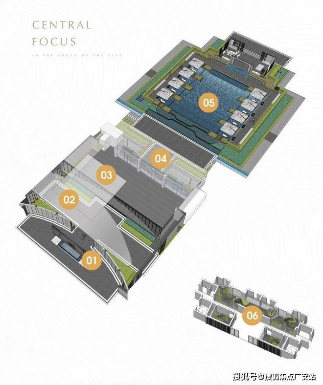 六进归家景观主轴:园林前庭一星空门楼一星级大堂- 天光庭院一镜面水景一禅意门厅。专业跑步系统/休闲养生系统/智能化无接触园区
