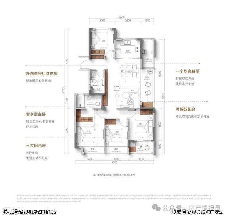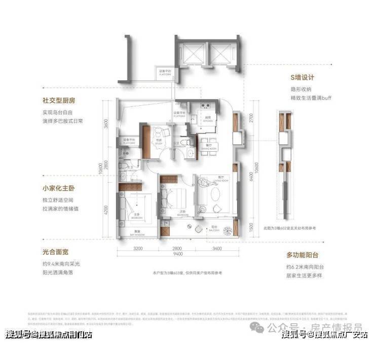 【光合面宽】约9.4米南向采光,阳光洒满角落