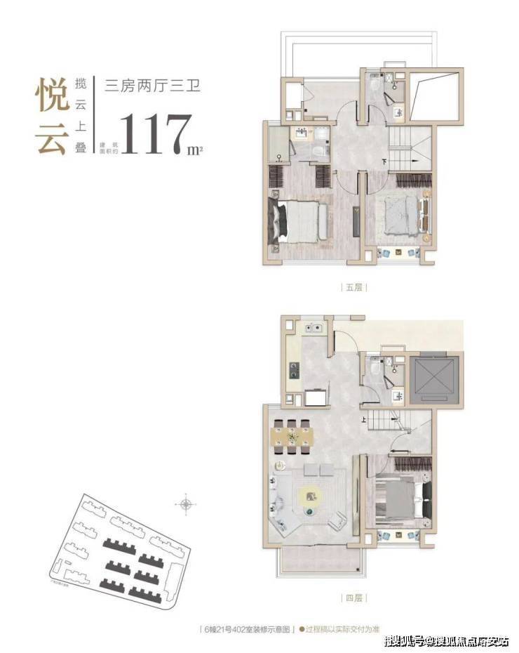 产品类型:主推建面约85–129㎡的洋房与叠墅,涵盖三至四居室户型