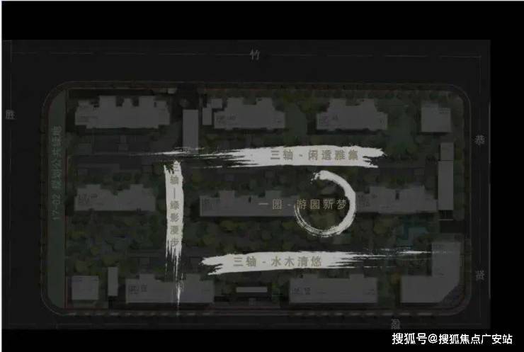 首推地块以南北一轴+东西两轴及核心景观区,构成“一园三轴”的景观结构,移步异景,如诗如画。
