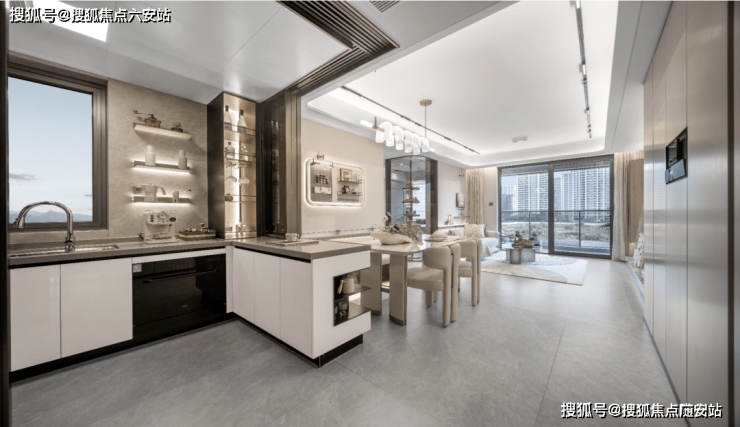 精装标准达3500元/㎡,户内配置日立中央空调、德国菲斯曼地暖、老板烟灶洗三件套。卫浴洁具选用TOTO、西门子、恩仕等一线品牌,客餐厅地面升级岩板替代传统地砖,提升整体质感。