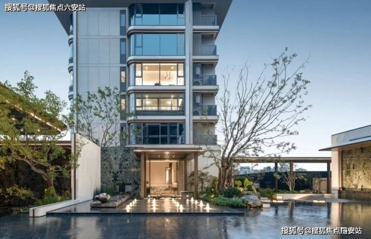项目以“金框超流体”为设计理念,建筑立面采用鎏金铝板与大曲面玻璃幕墙结合,顶部弧形塔冠勾勒江河流动意象。边套户型配备270°IMAX弧形景观窗,实现更高窗墙比与全景视野,材质选用Prada绿奢石铺装门厅,单块黑山石重达26吨,彰显归家仪式感。