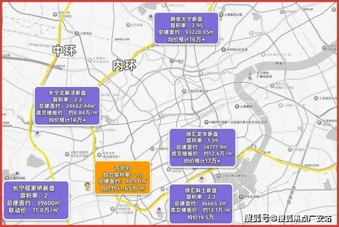 古北99地处内环旁,此次均价仅11.65万/㎡,上海内环新房什么价格,想必不需要独家君多说,我们单看内中环: