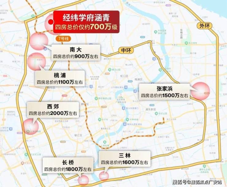 而一旦错过经纬·学府涵青,700万级预算别说买进中环旁4房,就是外环外的3房都难以够到(外环外的梅陇、唐镇单价超过8万,百平3房总价800万级)。