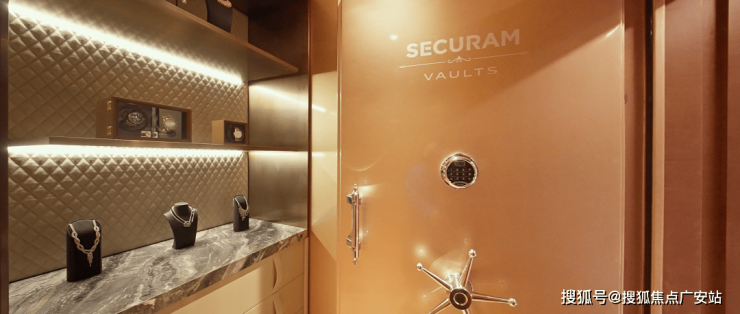 隐藏移门后面,是防弹金库门,除了日常的珍品收藏外,是杭州真正意义能够紧急避难的安全屋,因为有独立供氧、防烟防毒、卫星通话,耐火极限2小时,能够在灾难来临的时候最大程度保护家人的生命安全。