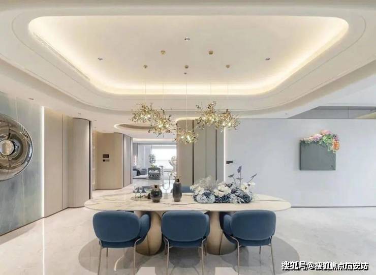 充满天马行空的想象力,三层圆弧设计搭配金属线条,在数学上是双曲马鞍面,单曲线就已经够复杂了,双曲线的精度要求很高,造价是普通的几倍。书房的吊顶用平滑的曲线过渡,完美消融了梁的存在感。餐厅的圆角矩形下挂吊顶则是他的特色,辅以吊顶映射的星光点点,如梦如幻。潮观凤起云座售楼处电话:400-998-7894