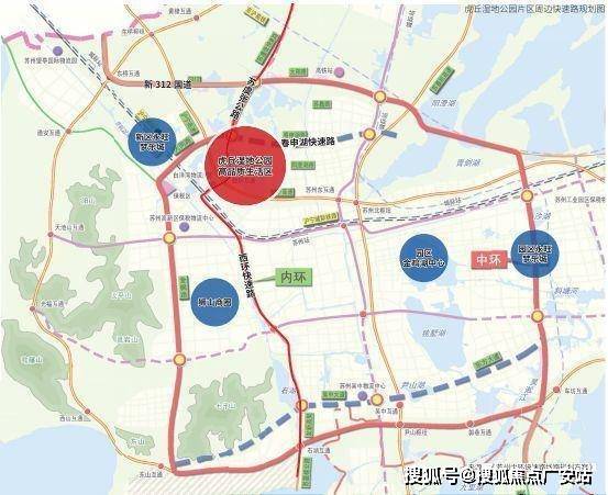 高架快速路:西环快速路(项目西侧可上西环快速路,30分钟内到达新区,园区,市区核心商圈位置);春申湖快速路(项目北侧可上中环,最快预计15分钟到达园区星湖街核心位置)