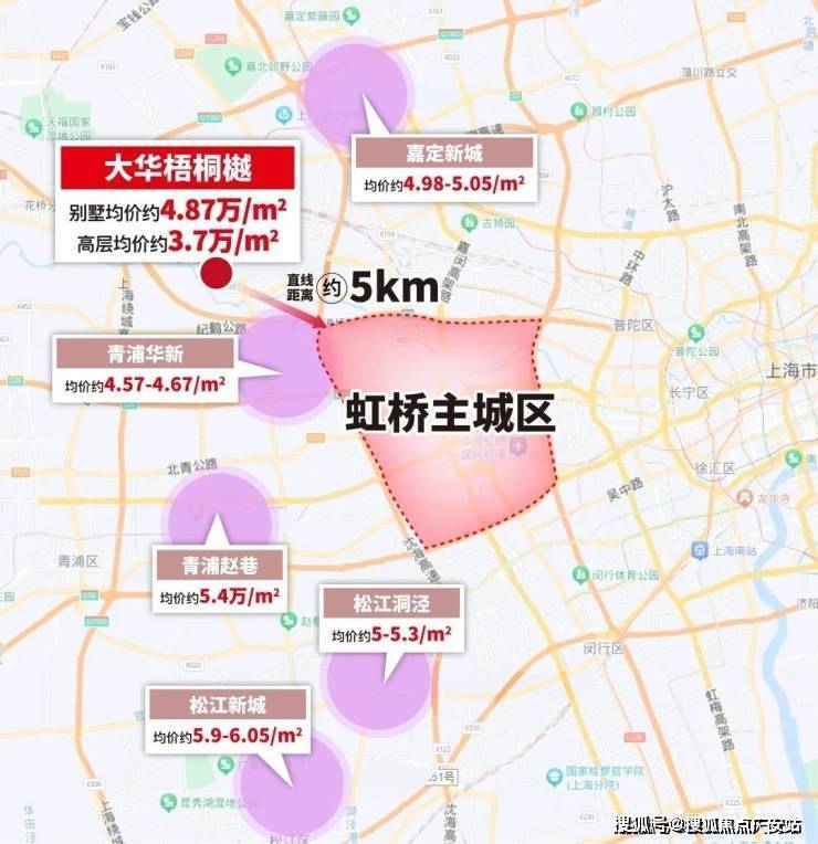 今年大虹桥的上车门槛不断加码, 青浦徐泾联动价已攀升到6.95万/㎡,辐射板块如青浦赵巷、嘉定新城,松江新城等, 清一色均价来到5万+。
