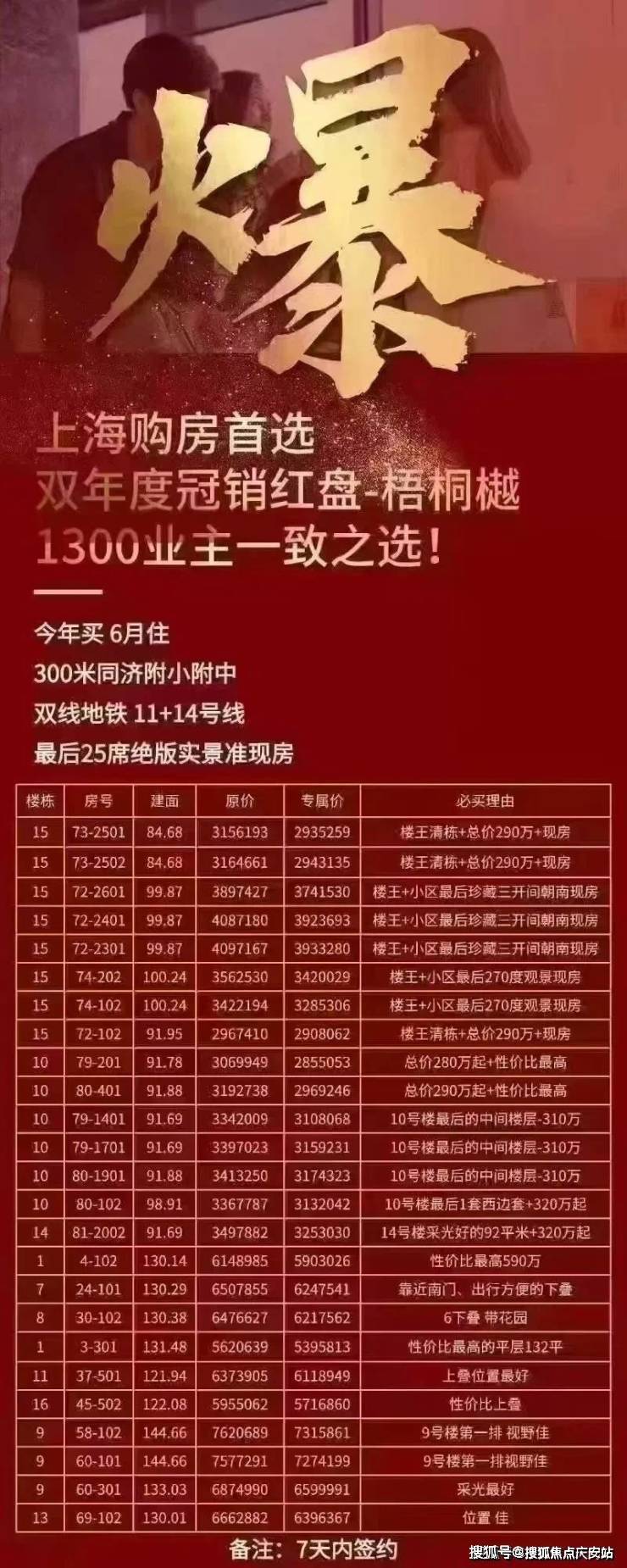 不得不说,虹桥北大华梧桐樾价格极具性价比, 高层均价约3.7万/㎡,别墅均价约4.87万/㎡,墅质精装3房主力总价300万级。
