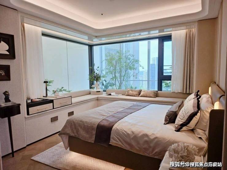 电视背景墙采用卡慕白的石材+皮革造型,弧形吊顶,相当讲究,连空调出风口的形状都打造为海上·清和玺logo山茶花的形状~~三大件为大金(或同等档次)中央空调和地暖,新风系统为百朗(或同等档次),南向阔景阳台,采光视野一级棒!