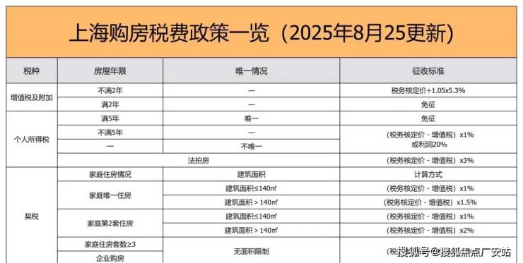 三、上海2025年8月最新购房税费政策