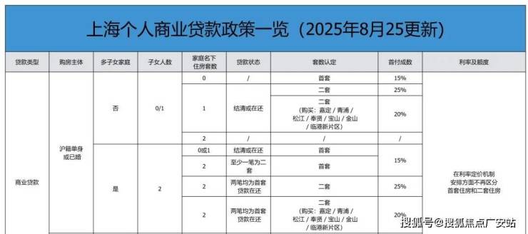 二、上海2025年8月最新购房商贷/公积金贷款政策