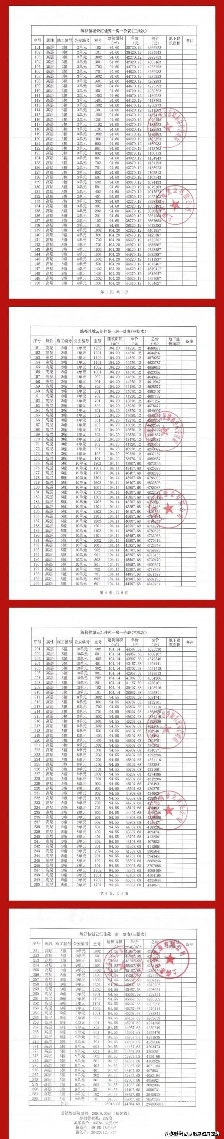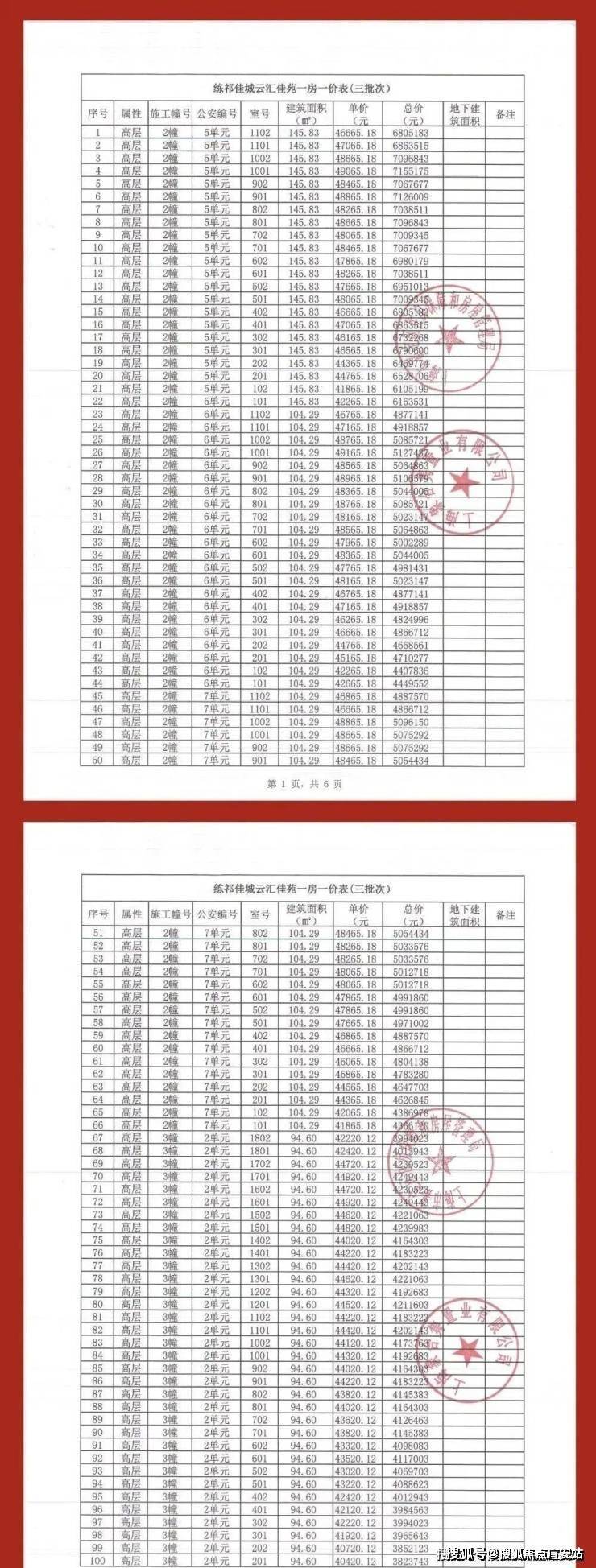 附一房一价表: