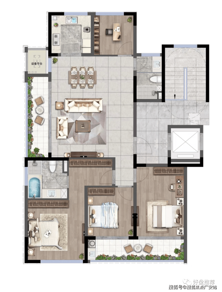 3.户型选择:根据家庭人口数量和居住需求,选择合适的户型。户型方正、南北通透、布局合理的房子更受欢迎。要注意房间的功能分区是否科学,动静分区是否明确,卧室、客厅、厨房等空间的尺寸是否合理,是否有浪费面积等问题。