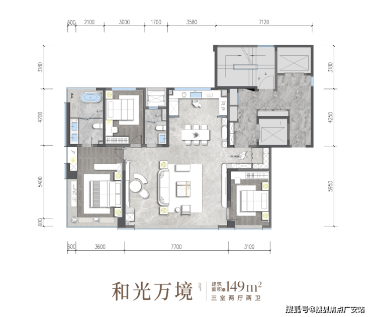 如小高层产品主力配置约149㎡户型,可宽厅三房也可魔改四房。约7.7米的超大客厅、LDK布局、独立电梯入户的体验非常好。