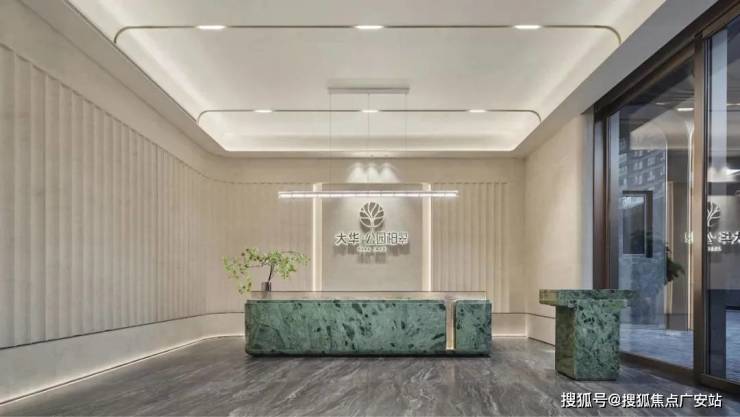 内墙材料选用来自保加利亚的维纳多石材,整块大理石圆弧拉槽,这是顶级豪宅才有的用料和细节。大堂接待台选用产自意大利山脉的宝格绿奢石一体打造而成。这些用料和最终呈现出来的浓郁海派氛围,是对大华集团实力和匠心最好的体现。