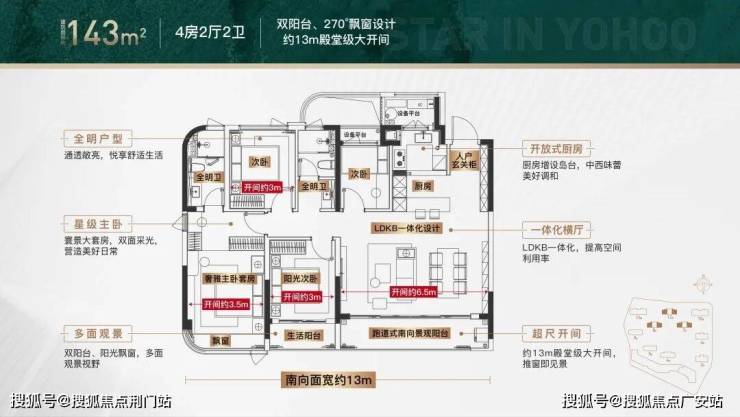 约13米南向面宽+约6.5米阳台,约27㎡LDKB一体洄游社交场,