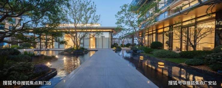 走进社区,温润雅奢的园林迎面而来。选用贝金米黄石材、水纹玻璃等高端材料,