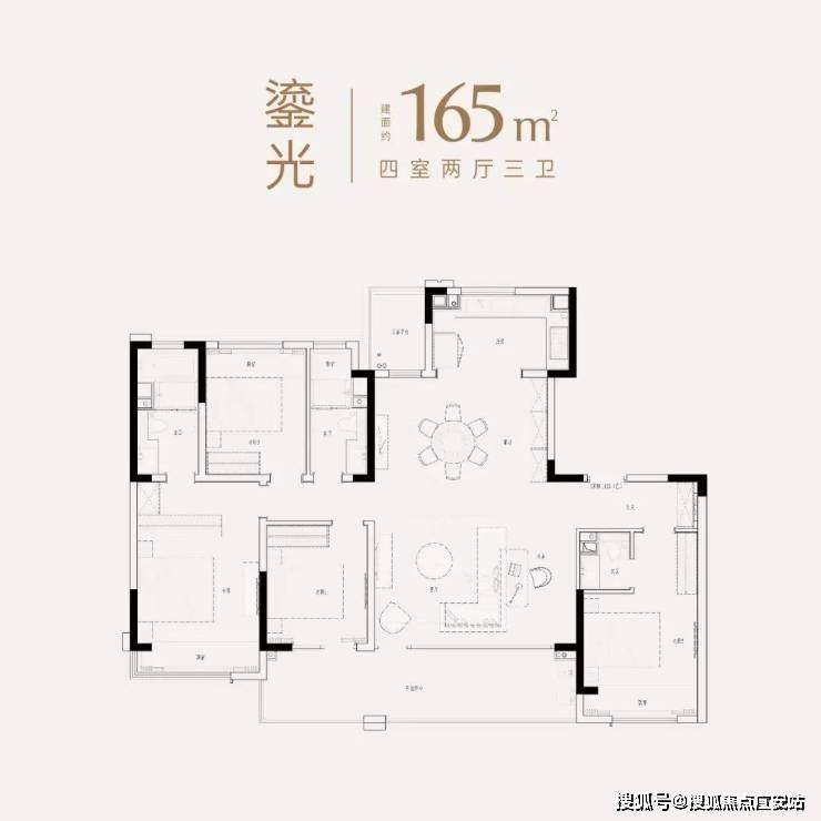 165㎡【鎏光】:4室2厅3卫,通透大气格局,LDKB一体化设计,U型宽厨,双主卧套房设计,私密度与尺度感兼得