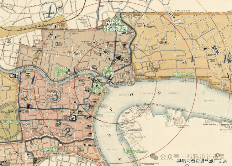 翻开1916年上海地图,以黄浦江与苏州河“一江一河”交汇处为原点,外滩瑞府售楼处:400-998-7894☎️☎️☑️☑️所在地块,恰处于城市核心第二圈层(1-2公里范围内),与华侨城苏河湾并列,而金陵华庭则位于第三圈层。