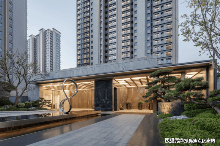 现代国际的酒店式落客,让归家仪式感拉满。门口水景矗立一座艺术雕塑,据说是艺术家朱峰的著名作品,仪式感之上又多添了一份独特的艺术性。