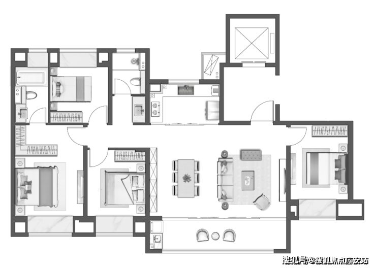 建面约225㎡4房2厅3卫
