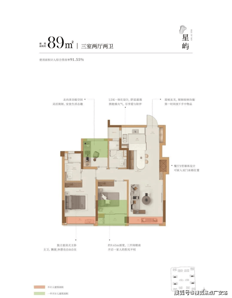 🟣最大约𝟏𝟎𝟎%得房率 超级空间最新迭代升级版户型,以超级得房率,最大化飘窗设计、可拓展阳台等等,让空间实用面积升级扩展。