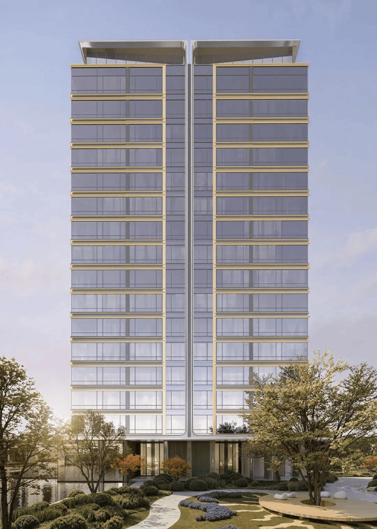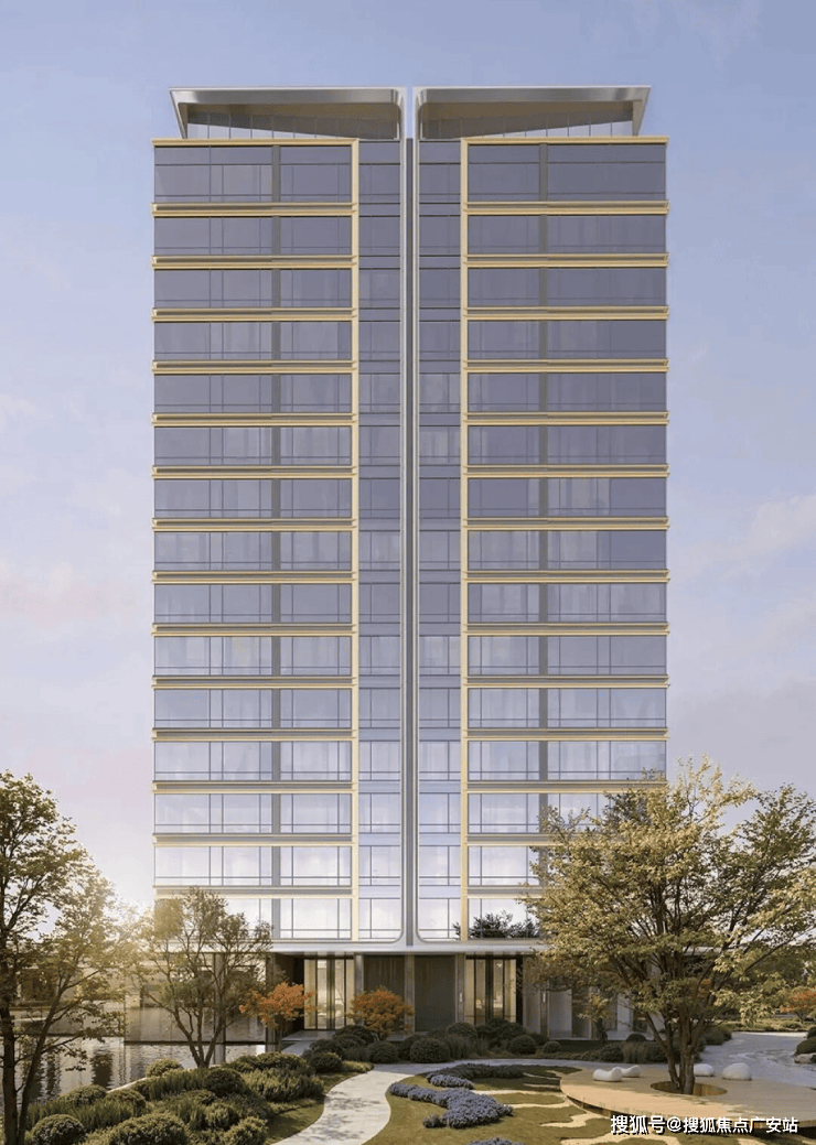 🟣超流体立面 铝板建筑三面大尺度玻璃和铝板,270°无柱转角飘窗设计,公建化极简建筑风格、超流体屏立面,勾勒建筑的轻盈之姿,呈现与岛屿共生的悬浮质感。