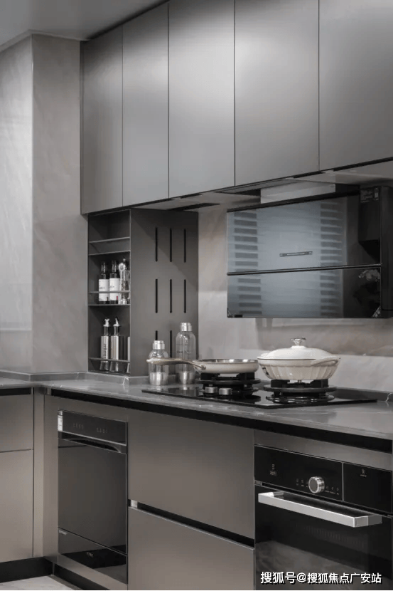 家的温情欢聚场:在餐厅区域,我们安置了一件餐边柜,其透光台面设计采用了雪山飞狐奢石材质,该餐边柜在收纳和储物功能上表现出色。