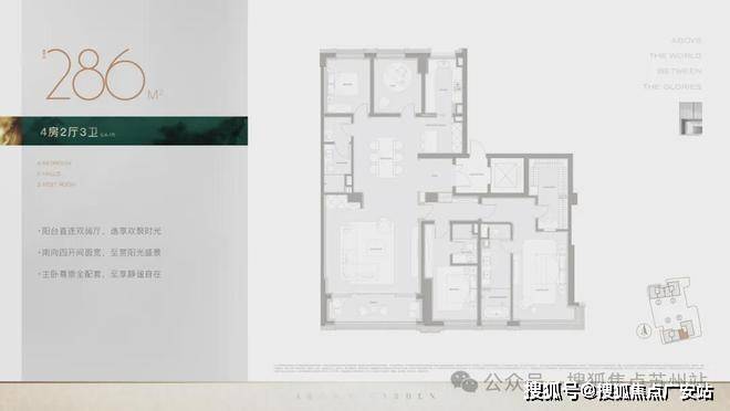 1.四卧均带独立卫浴,南向双卧为「超级套房」