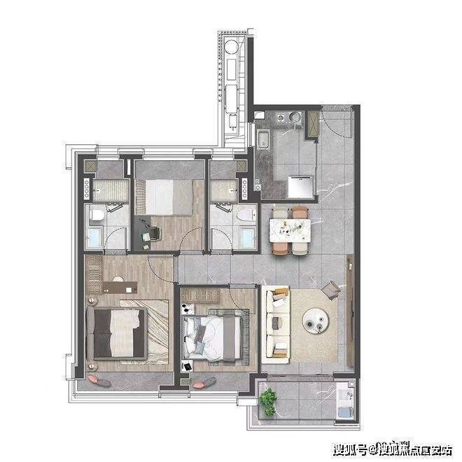 户型方正通透,全明格局,三开间朝南!✅✅中环云悦府售楼处电话:400_998_7894☎️☎️✅✅✅✅✅麻雀虽小五脏俱全,虽然面积不大,但是好户型的优点一个也不少!
