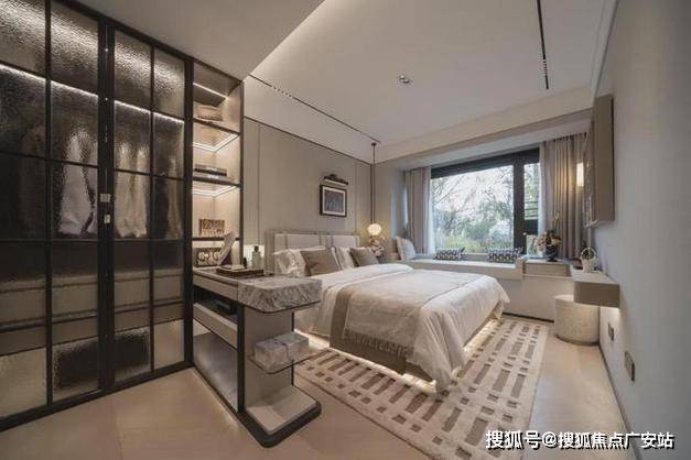 立面美学:采用大面积玻璃幕墙、铜色铝板及浅白色陶瓷板,极致窗墙比搭配270°主卧落地窗
