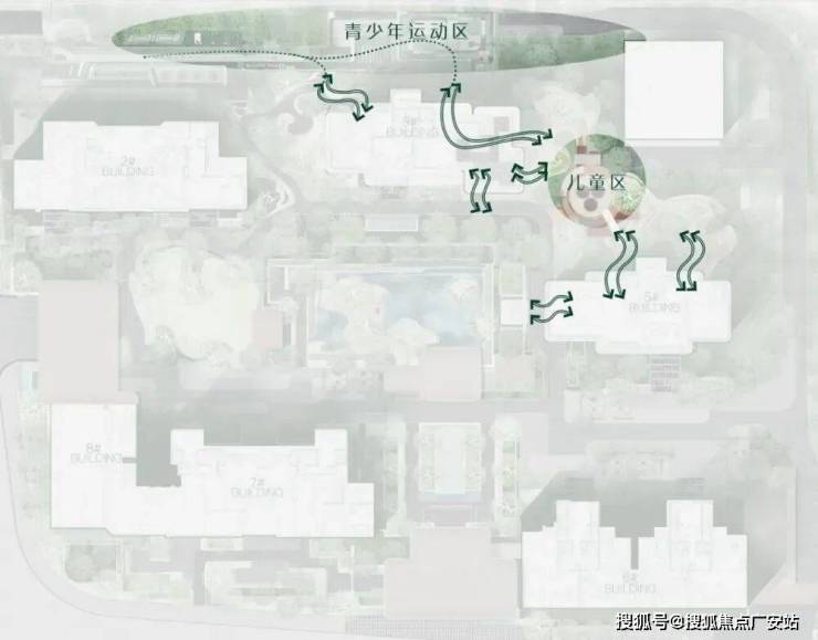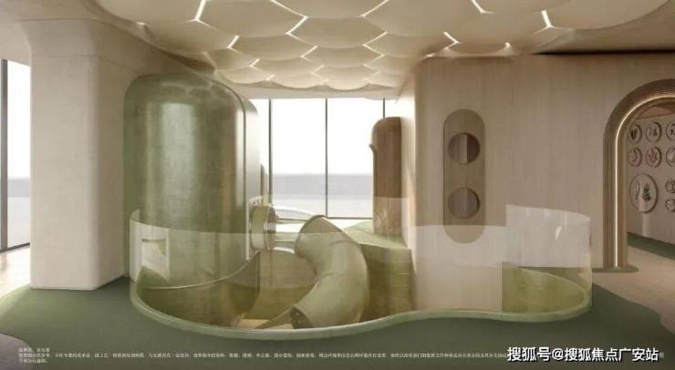 折叠绿洲立体花园:约 2300㎡社交客厅 + 泳池 + 下沉庭院 + 全龄活动区