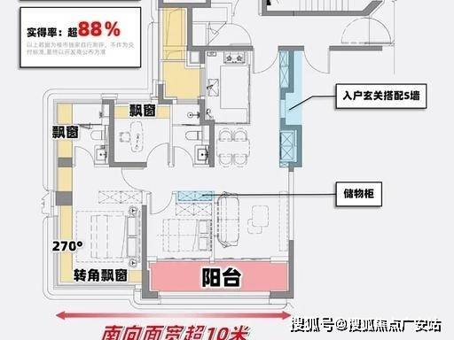 边套、三开间朝南、南向面宽约 10 米、270° 观景阳台