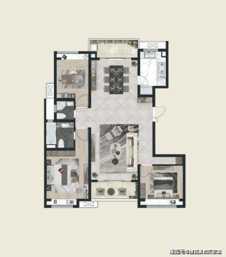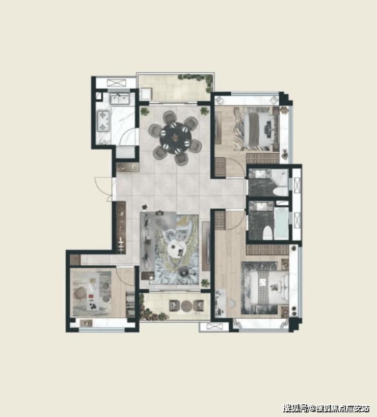 🏠舒适户型设计:两梯两户无连廊设计,所有卧室带飘窗,三开间朝南,大面宽短进深,得房率约80%。