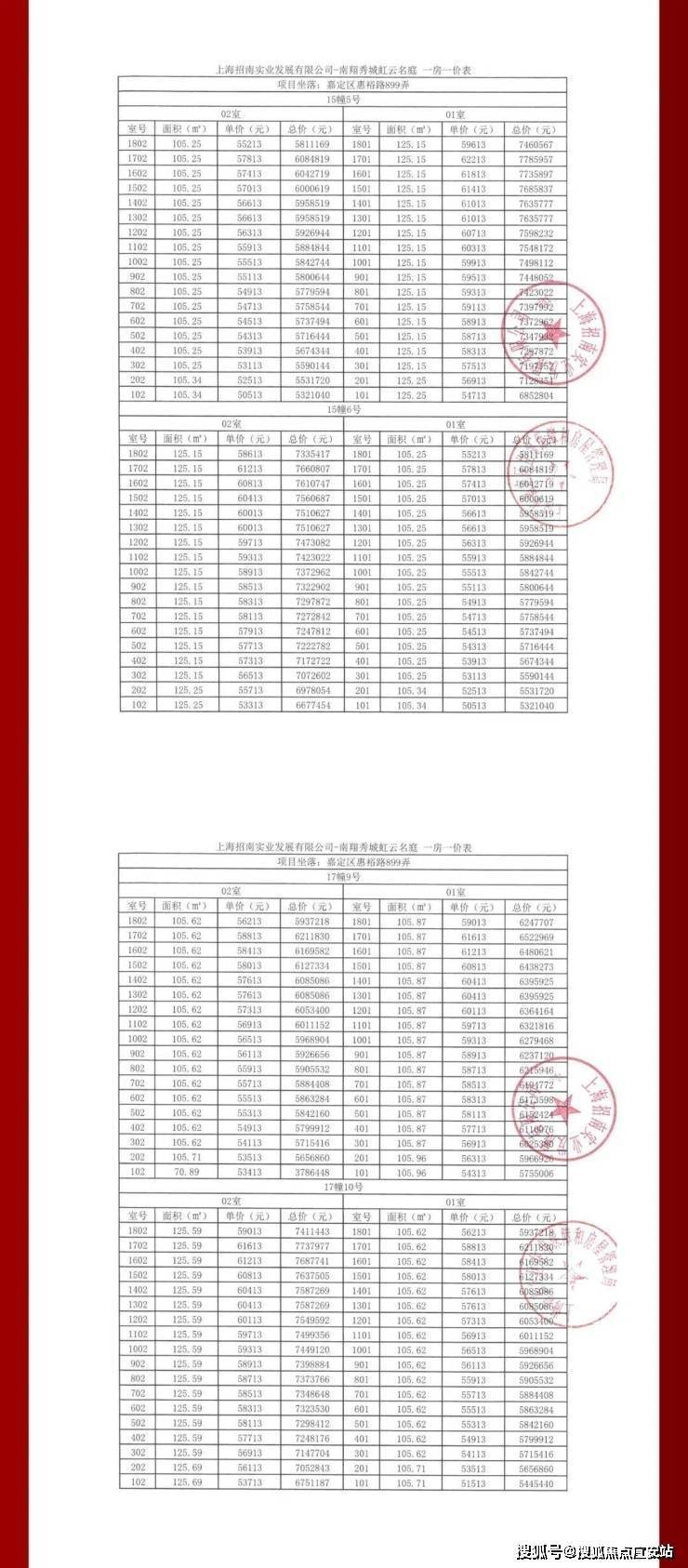 项目一房一价表