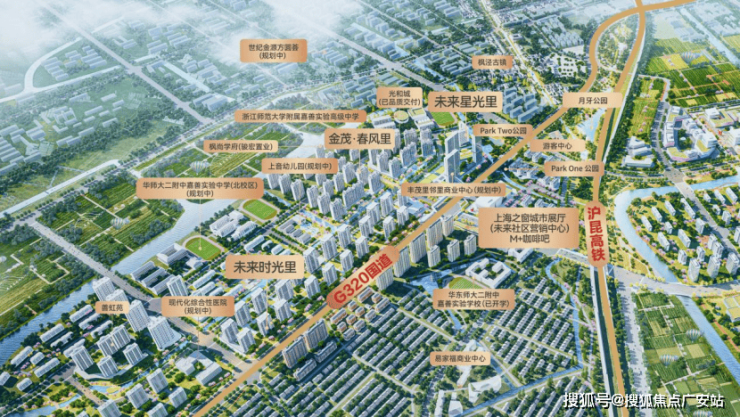 凭借紧邻上海的先天优势,依托“2高3轨2路”立体交通网络(G60沪昆高速、申嘉湖高速;上海示范区线、嘉兴至枫南市域铁路、南枫线;320国道、朱枫公路),实现与上海同城生活圈,美好践行“上海乐业,金茂安居”的都会理想。