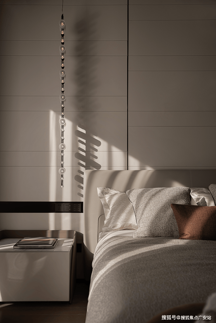 卧室是一个居所传递温度的媒介,它记录着故事,也观照着所有成长与交互。主卧内,温润木质在柔和光线的梳理下,创造出适宜休憩的环境。暖白的睡眠空间,材质间细腻无声,彼此结合,赋予沉稳静谧的调性,将一室素雅留给心无杂物的使用者。