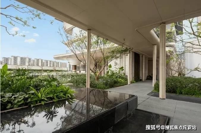 项目配置全域风雨连廊,以风雨连廊作为链接前场节点的视觉通廊,沿途景观一一铺展,当你归家时犹如穿越绿洲的旅行。