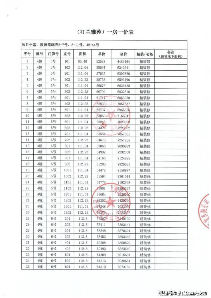 一房一价表如下: