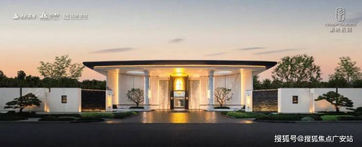 它汲取上海前滩华尔道夫酒店为灵感,以月光米黄石材为主基调,弧形景墙、安第斯雪景奢石柱子、极品铁冬青等结合使用,整体层次细腻,恢弘大气,也是业主身份的象征。