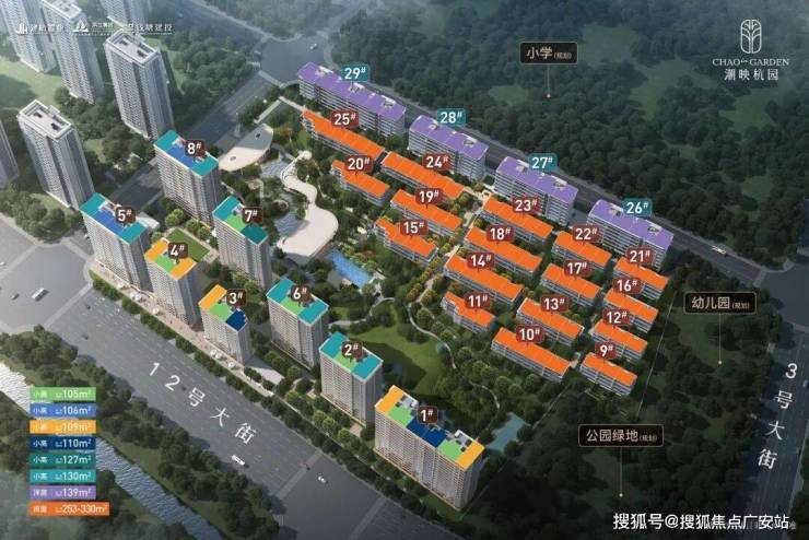 总建筑面积约147581㎡,小高层+洋房+排屋,产权70年,规划楼幢8幢13-17F小高层,4幢7F真洋房,17幢4F排屋,容积率1.4,绿化率35%,总户数649套,可售套数小高层451套,洋房126套,排屋72套,户型面积小高层建筑面积约105-130㎡,洋房建筑面积约139㎡,排屋建筑面积约253-323㎡,层高小高层约3米,洋房约3.3米,排屋约3.8-4.2米。