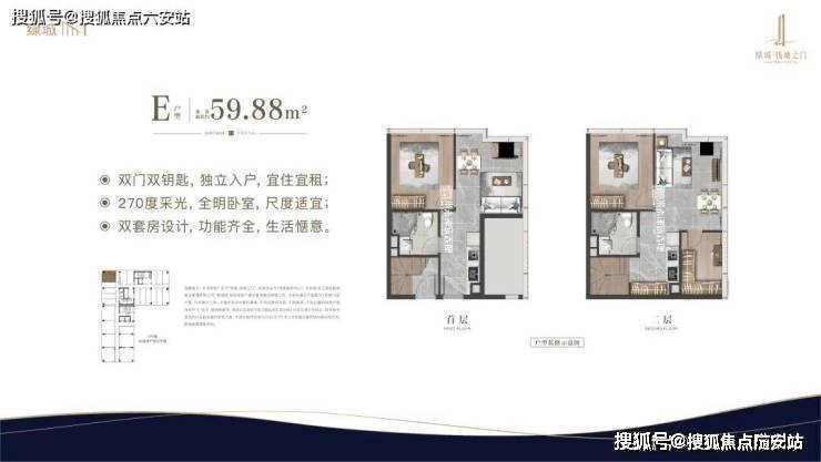 主力产品为建面34-59㎡双钥匙精装公寓,4.79米挑高设计实现“买一层享两层”,得房率高达82%。下层可作共享办公或商业展示,上层为私密居住空间,满足年轻创客、投资客及小型企业主多元化需求。