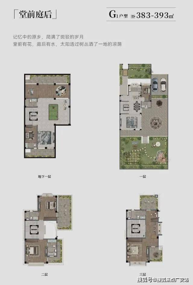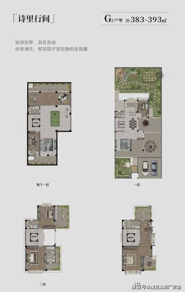 户型设计强调奢华与功能性,别墅产证面积383-646㎡(实际使用面积可达310㎡以上,含赠送面积),关键点包括: