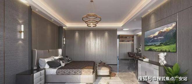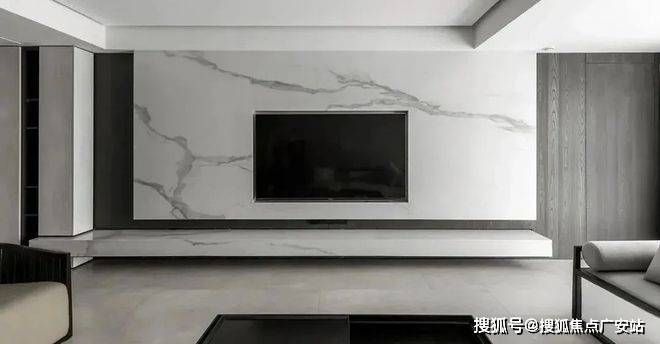 电视墙很长,用石材+护墙板做分段装饰,简单、有质感。白塘壹号售楼处电话☎:400-8558-224✔✔✔【预约☎】