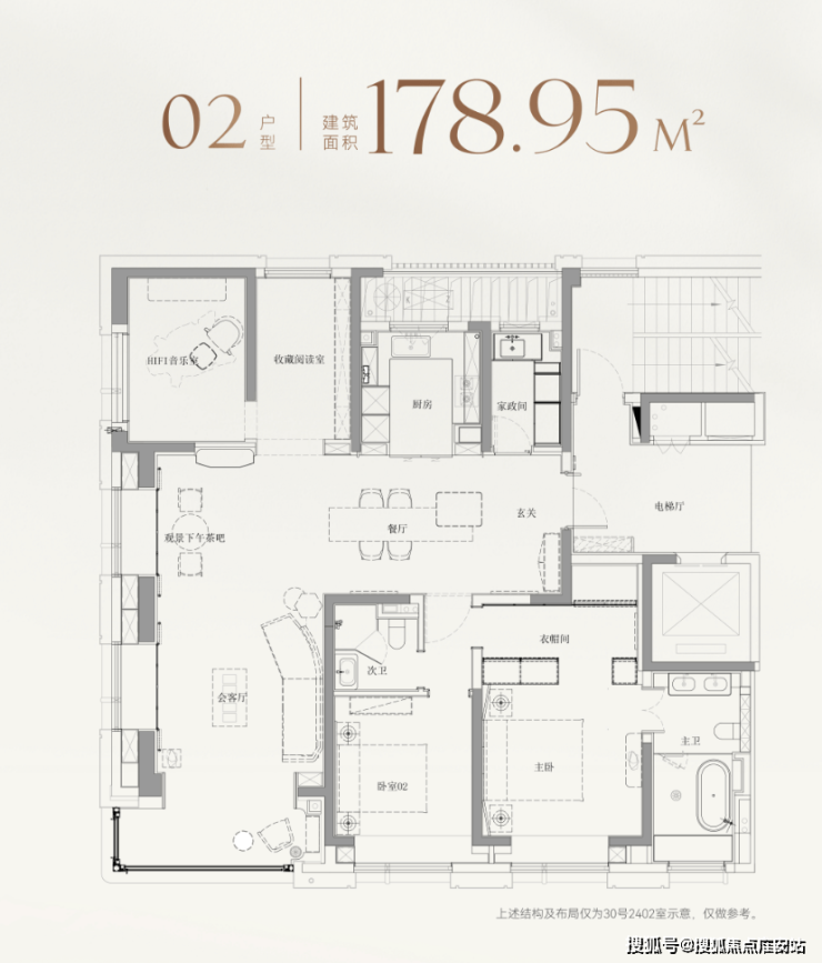 以建面约179㎡的边套为例,并未将北房间局限为常规卧室,而是灵活打造为HIFI音乐室与收藏阅读室,既可作为业主的灵感工作室,也能成为孩子的兴趣天地;